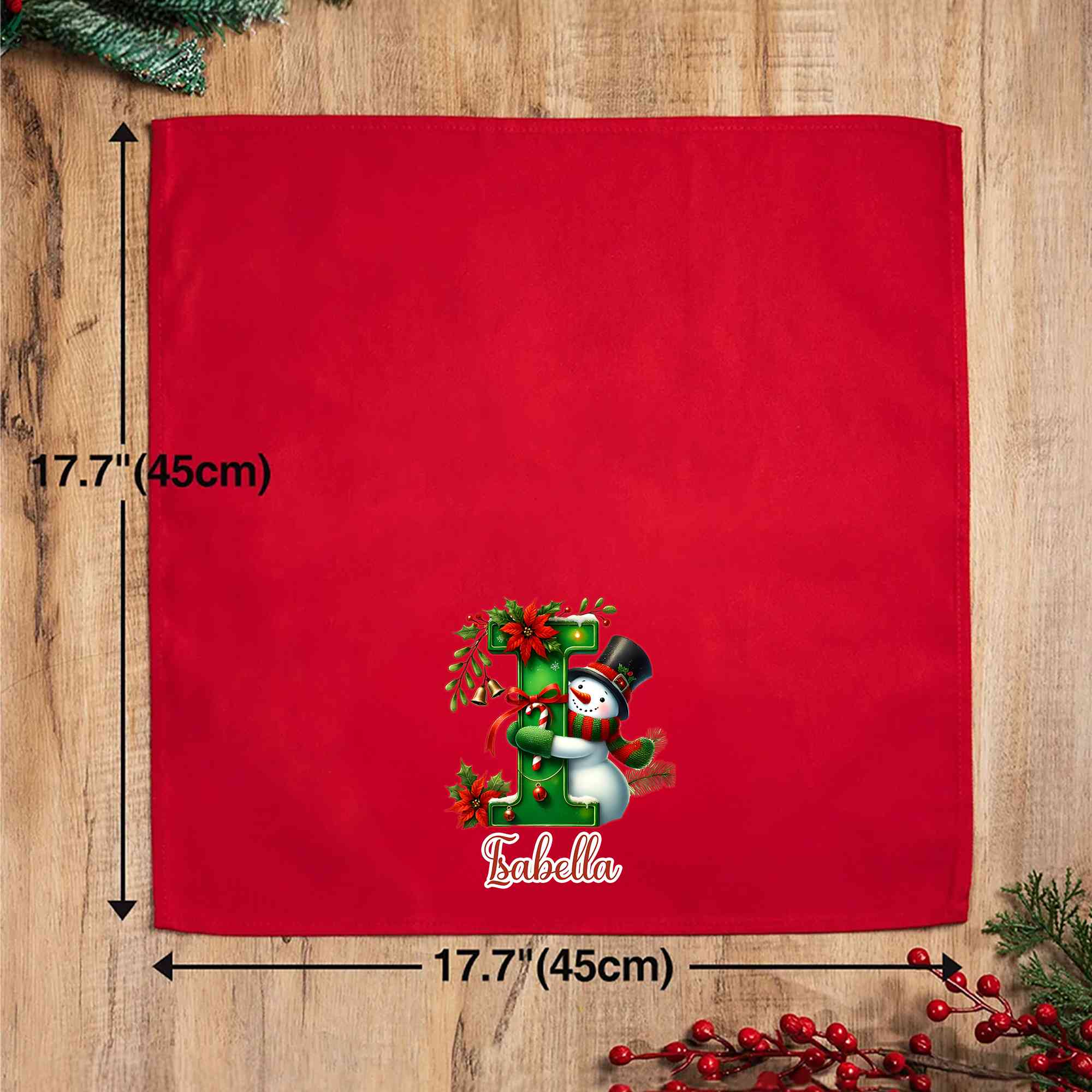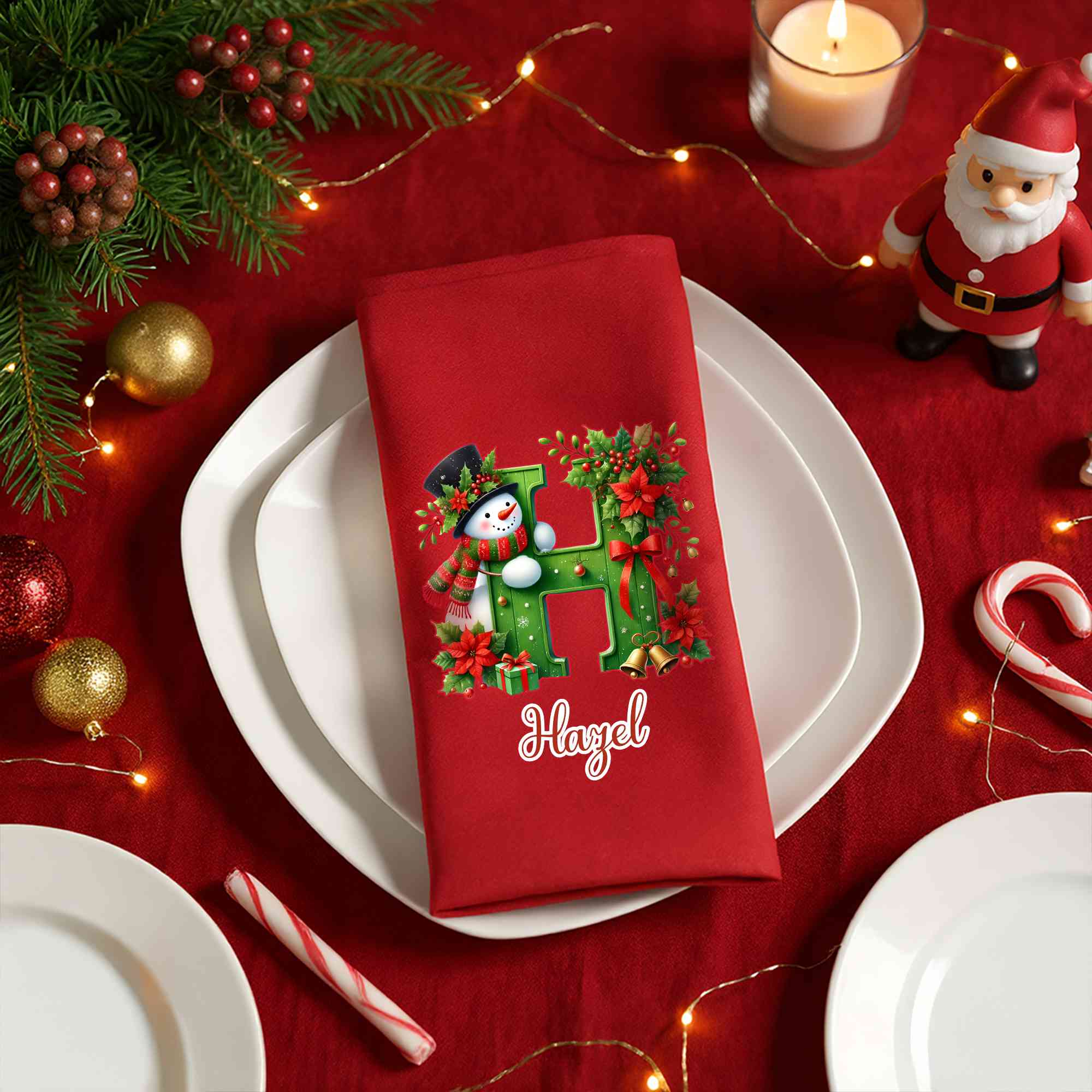 Custom Name Snowman Alphabet Christmas Napkin, Party Dinner Red Napkin, Dish Towel, Kitchen Accessory, Housewarming/Christmas Gift for Hostess/Family