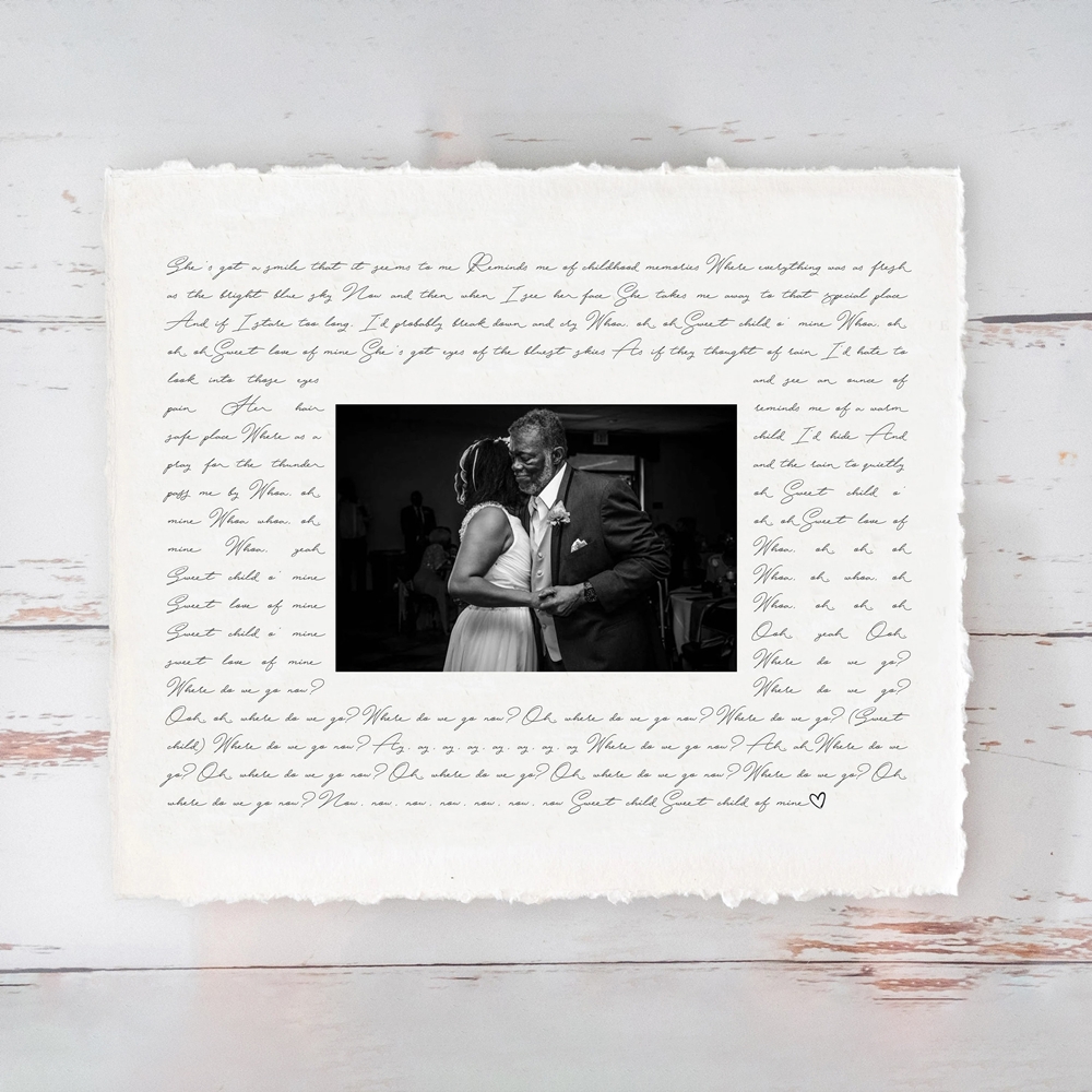 Sentimental Wall Art - This personalized frame beautifully combines cherished memories with the heartfelt lyrics of your favorite song, creating a unique piece of wall art that's perfect for any room.